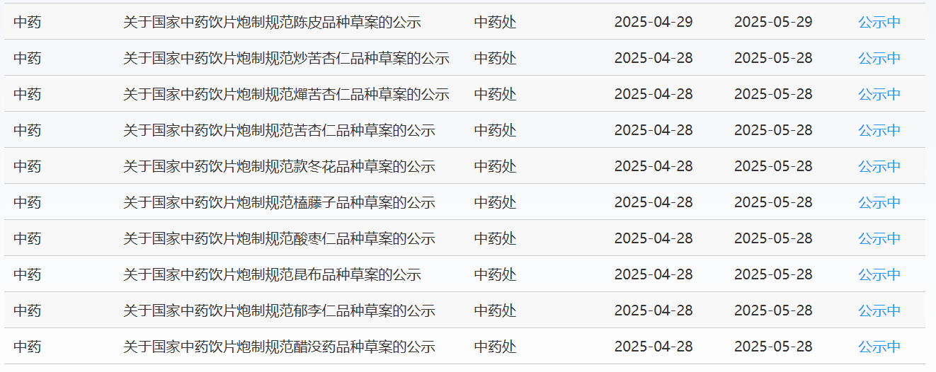 2025年4月28日中藥品種保護受理公示