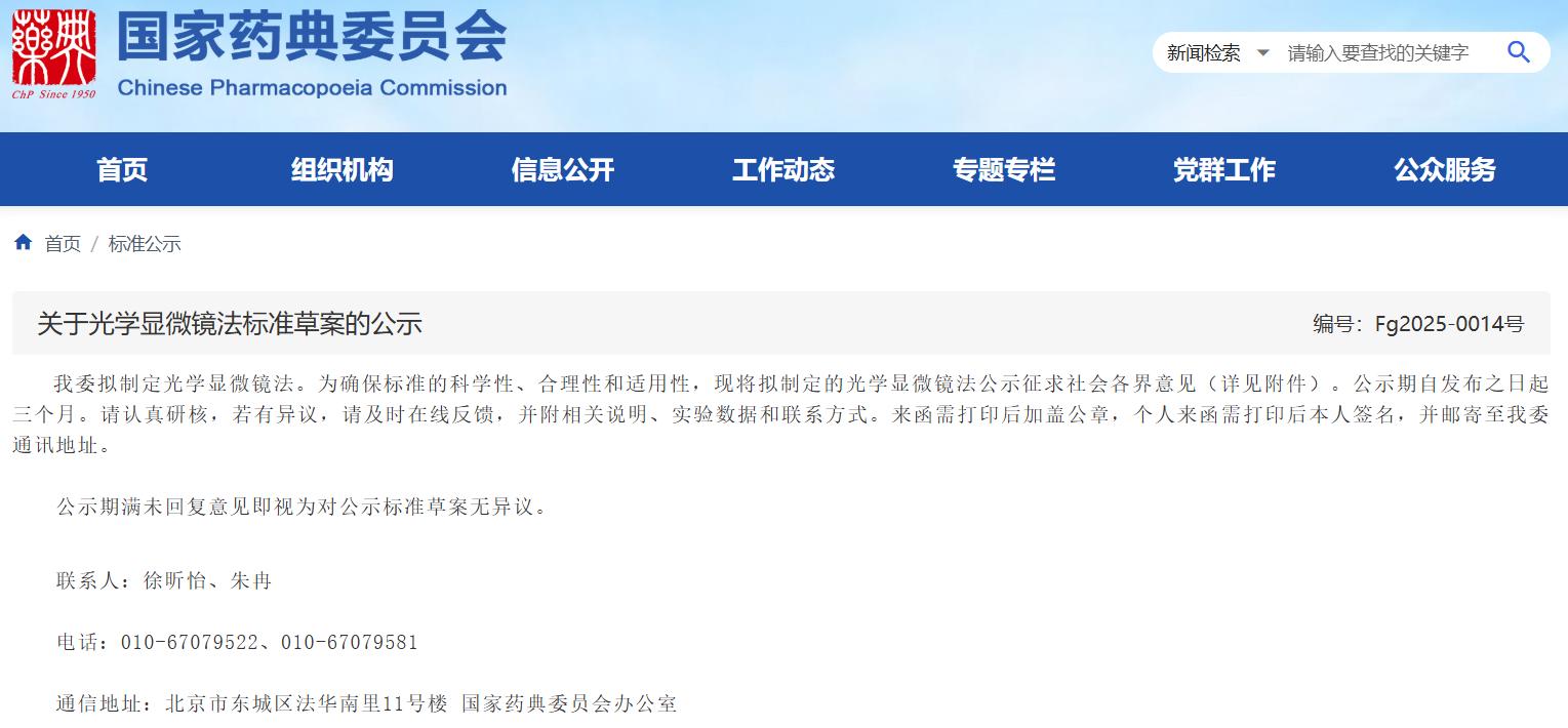 確保標準的科學性、合理性和適用性,現將擬制定的光學顯微鏡法公示征求社會各界意見。