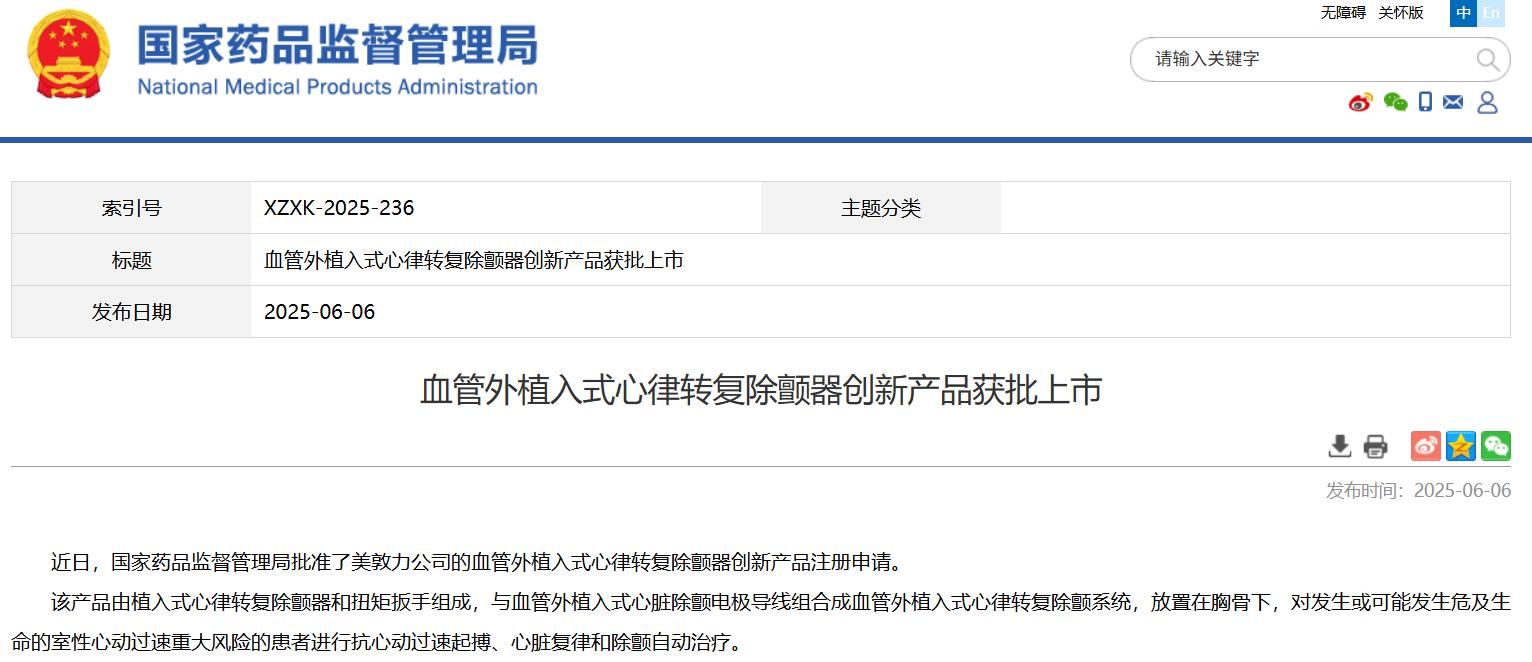 血管外植入式心律轉(zhuǎn)復(fù)除顫器創(chuàng)新產(chǎn)品獲批上市