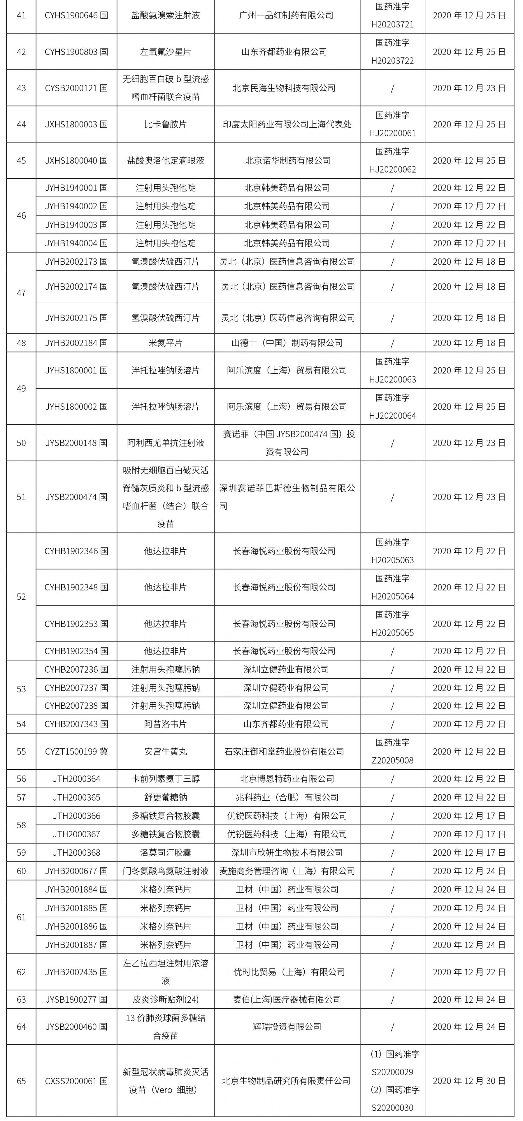 本周共計65個品種獲批取得藥品批準證明文件,其中一致性評價品種20個,包括注射劑品種7個,其中注射用更昔洛韋鈉為首家過評品種。