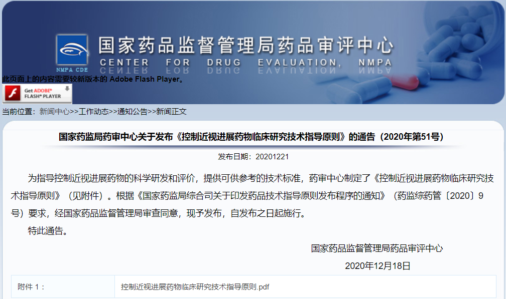 關于發布《控制近視進展藥物臨床研究技術指導原則》的通告(2020年第51號)
