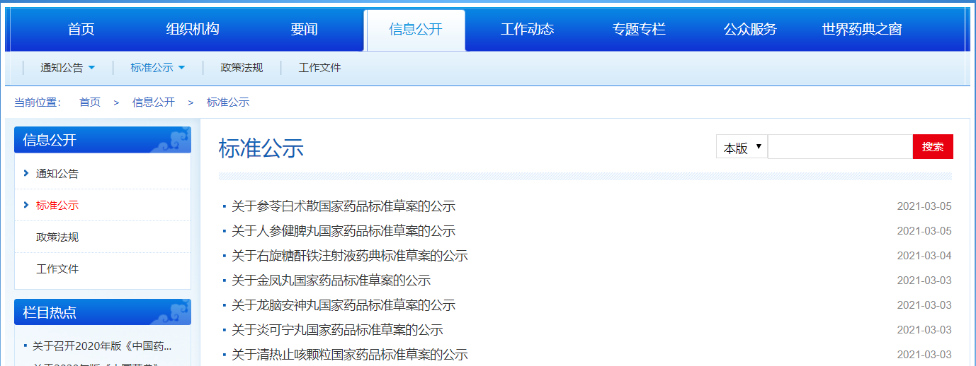 本周清熱止咳顆粒、炎可寧丸、龍腦安神丸、金鳳丸、人參健脾丸、參苓白術(shù)散國(guó)家藥品標(biāo)準(zhǔn)草案公示,右旋糖酐鐵注射液藥典標(biāo)準(zhǔn)草案公示。