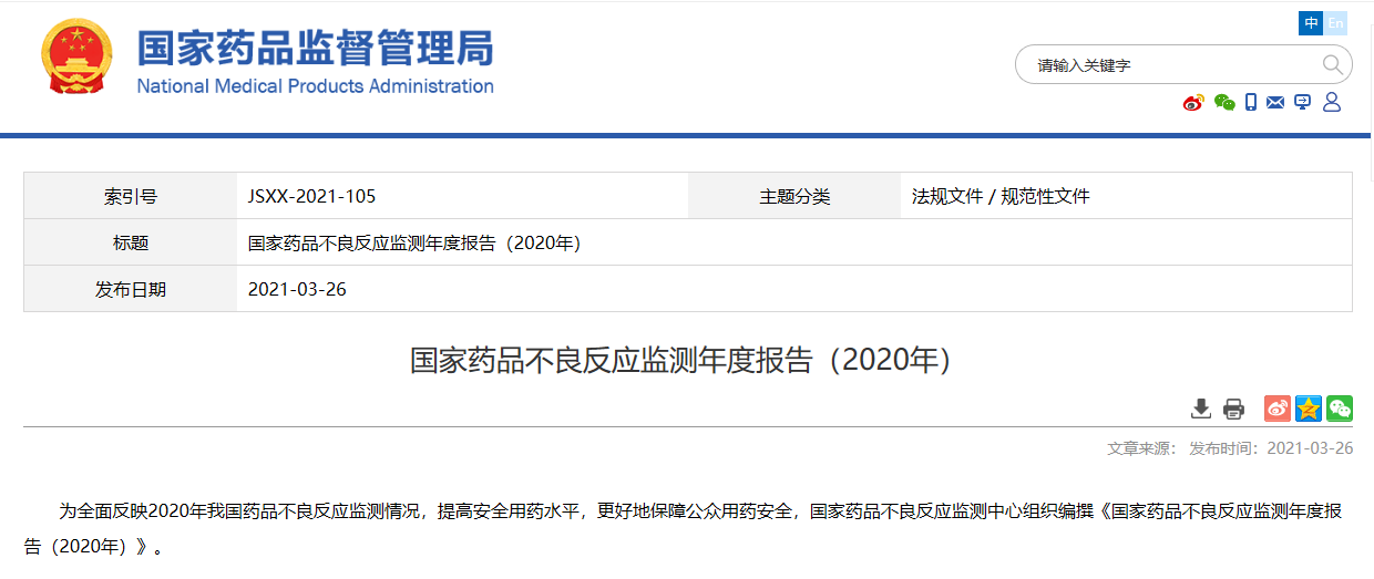 國(guó)家藥品不良反應(yīng)監(jiān)測(cè)年度報(bào)告(2020年)