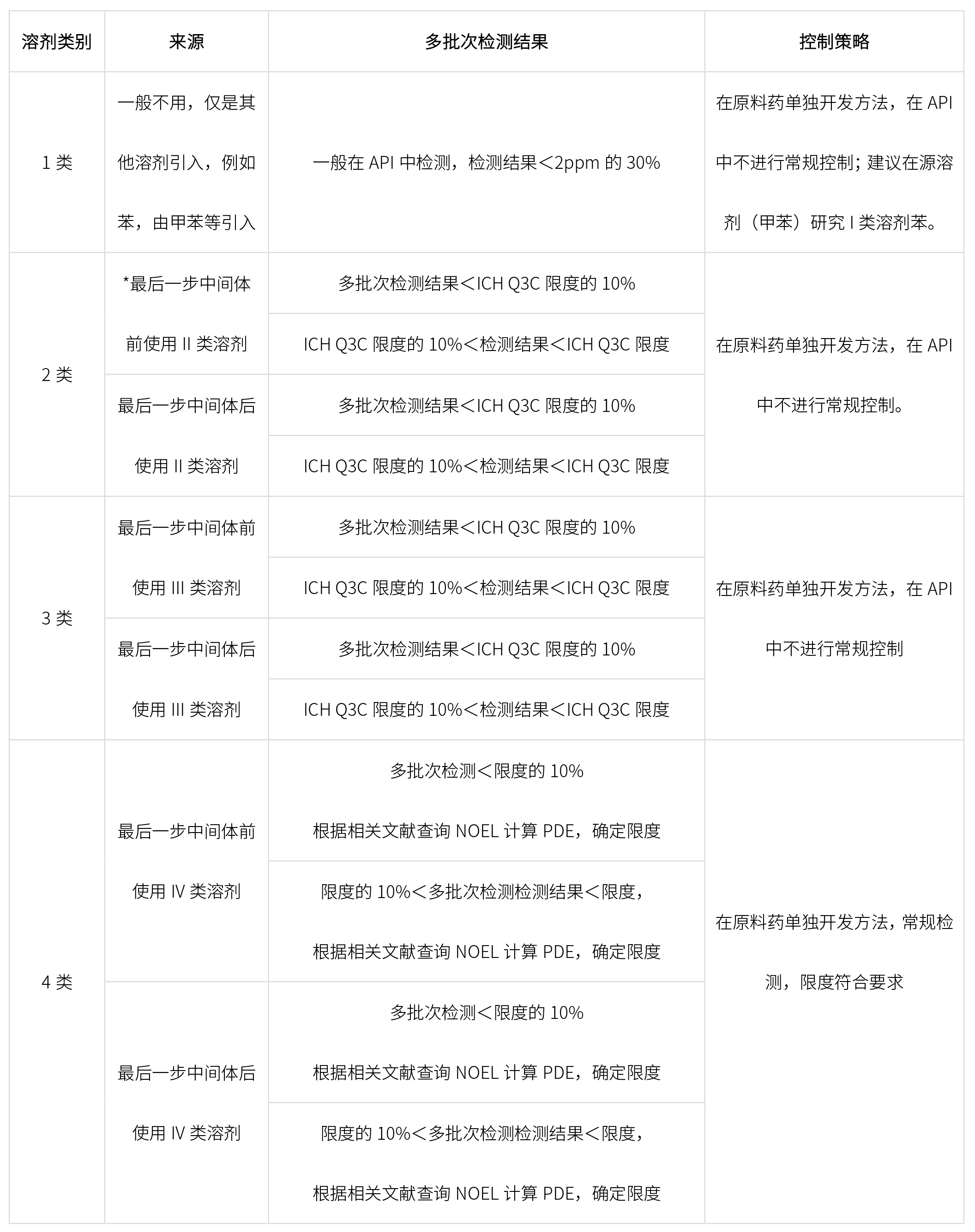 根據終產品合成工藝,結合ICH Q3C,確定控制策略如下:
