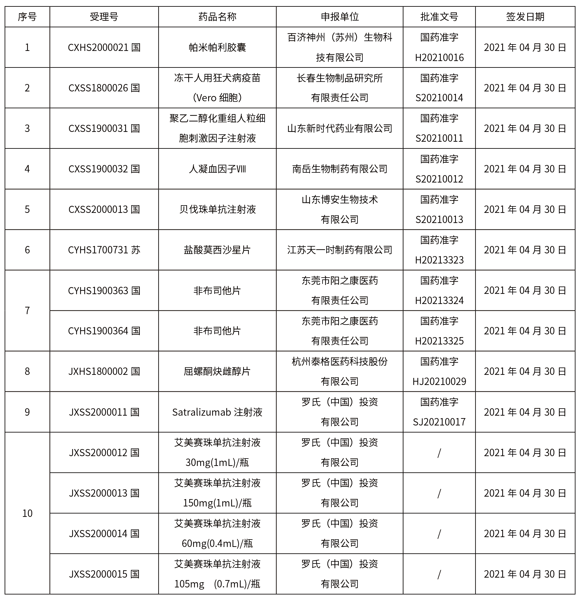本周共計10個品種獲批取得藥品批準證明文件,其中注射劑品種3個。