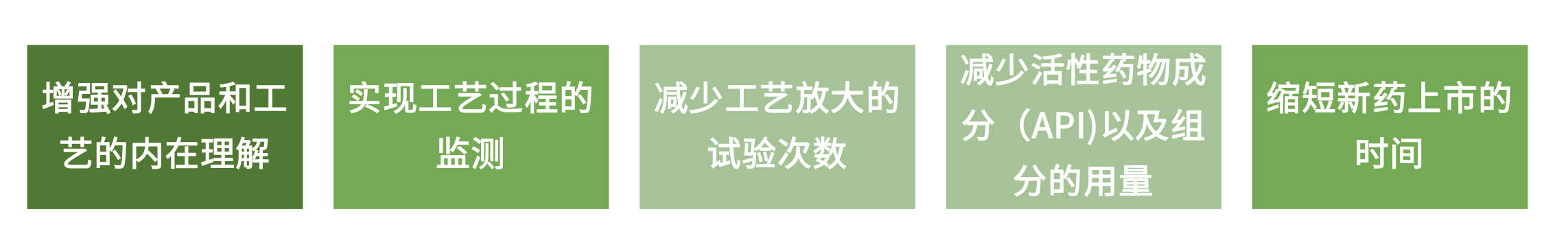 因為這些目標都是和生產環節緊密相關的,而基于“質量源于設計”原則,將PAT運用在藥物開發過程可以提升對工藝的理解和減少工藝開發與放大的時間,從而實現如下研發目標: