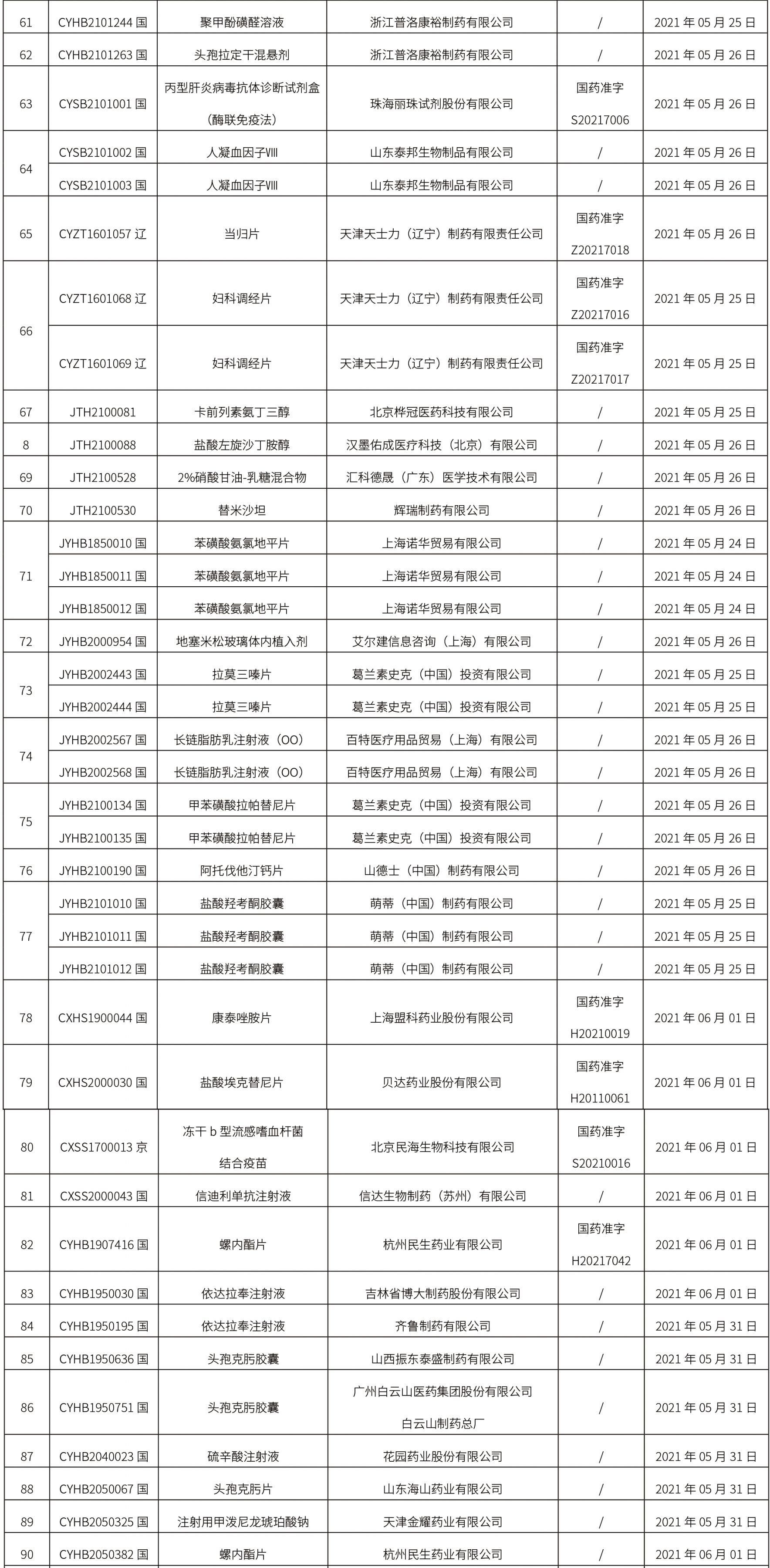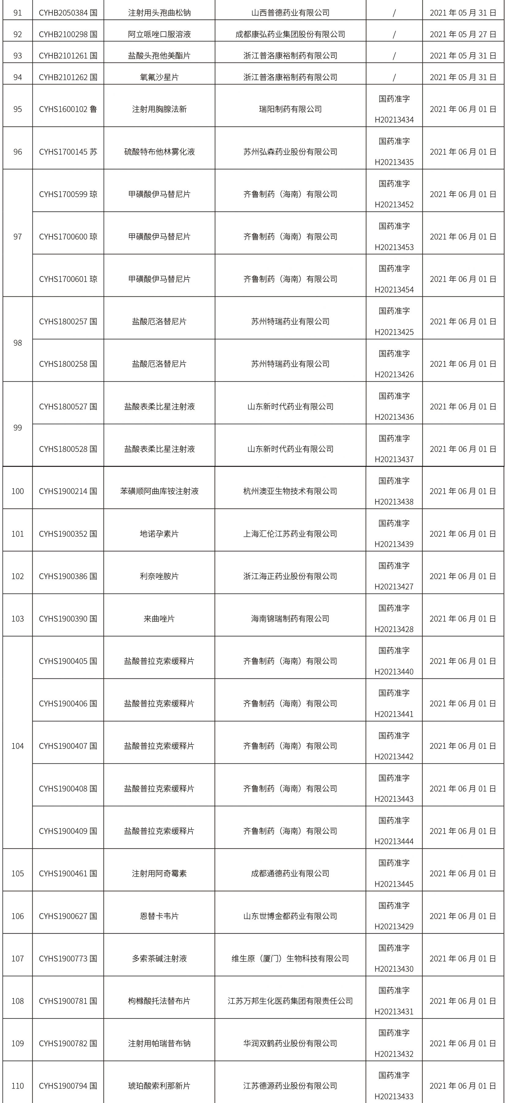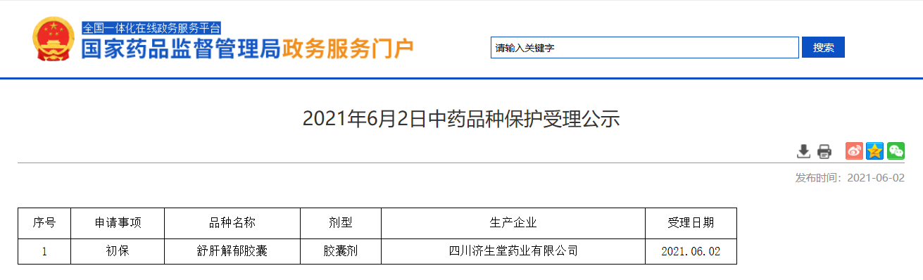 2021年6月2日中藥品種保護受理公示