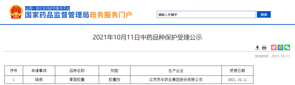 2021年10月11日中藥品種保護(hù)受理公示
