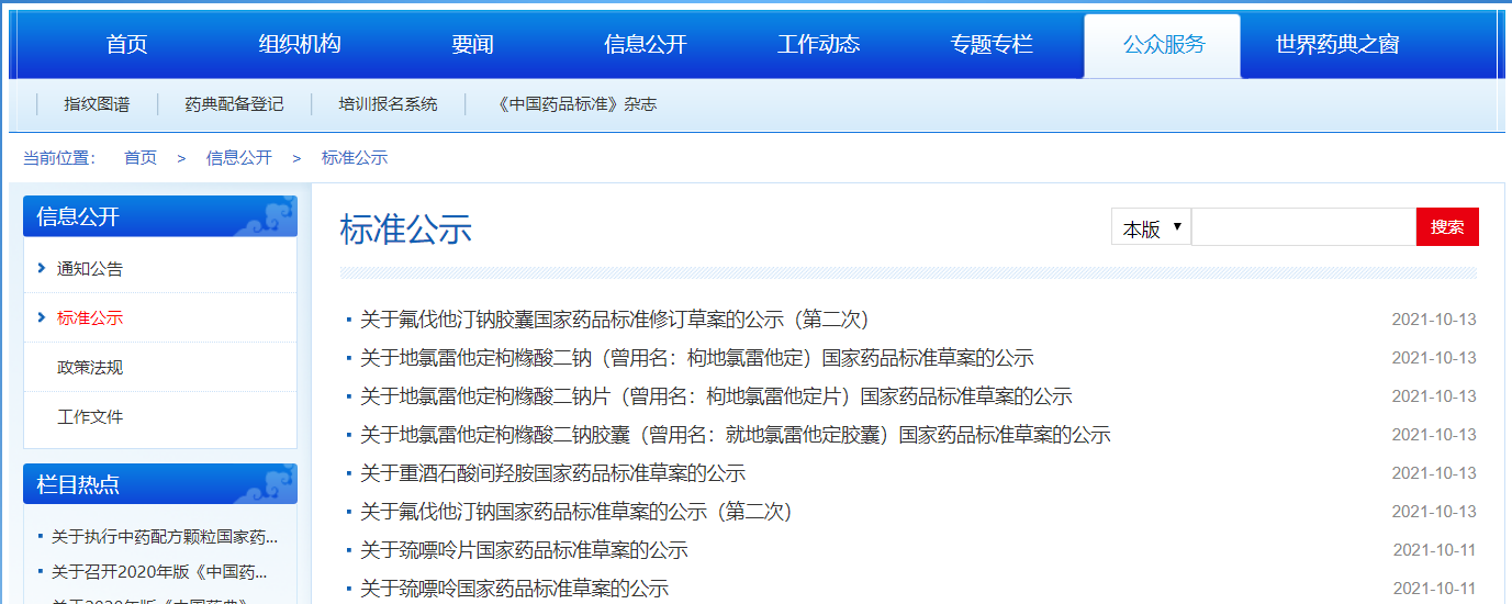 本周氟伐他汀鈉膠囊國家藥品標(biāo)準(zhǔn)修訂草案的公示(第二次),地氯雷他定枸櫞酸二鈉(曾用名:枸地氯雷他定)、地氯雷他定枸櫞酸二鈉片(曾用名:枸地氯雷他定片)、地氯雷他定枸櫞酸二鈉膠囊(曾用名:就地氯雷他定膠囊)、重酒石酸間羥胺、氟伐他汀鈉、巰嘌呤片、巰嘌呤國家藥品標(biāo)準(zhǔn)草案公示。
