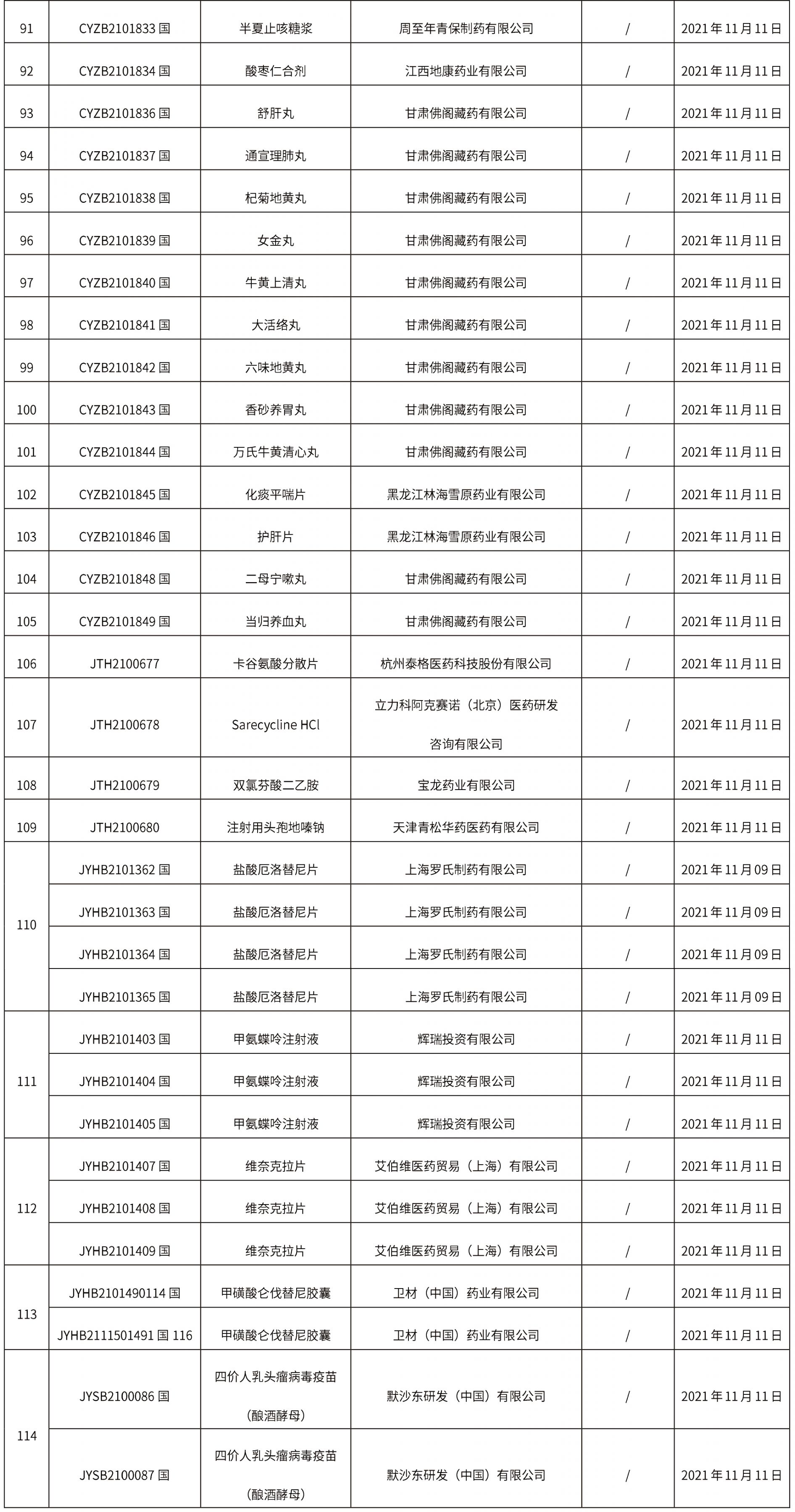 國家藥監局關于批準注冊110個醫療器械產品公告(2021年10月)(2021年第136號)