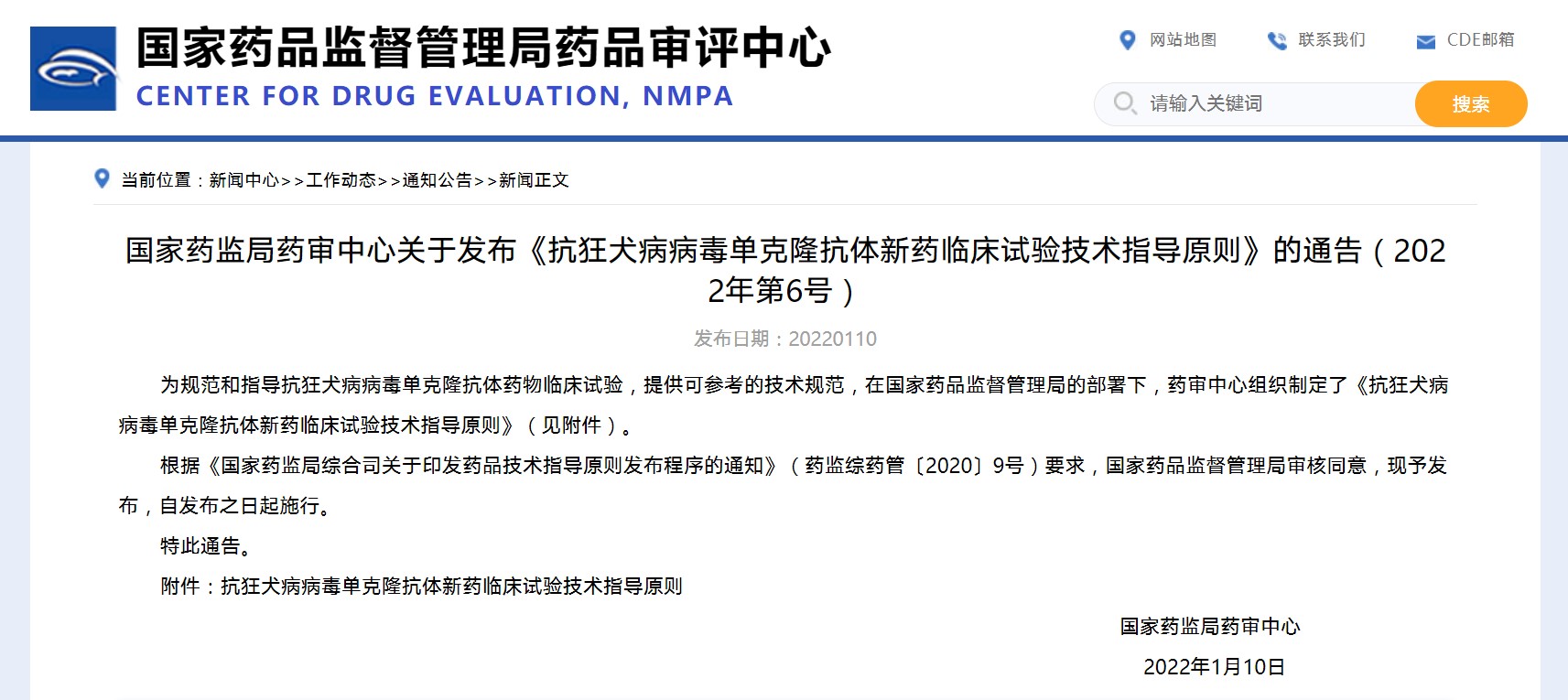 國家藥監局藥審中心關于發布《抗狂犬病病毒單克隆抗體新藥臨床試驗技術指導原則》的通告(2022年第6號)
