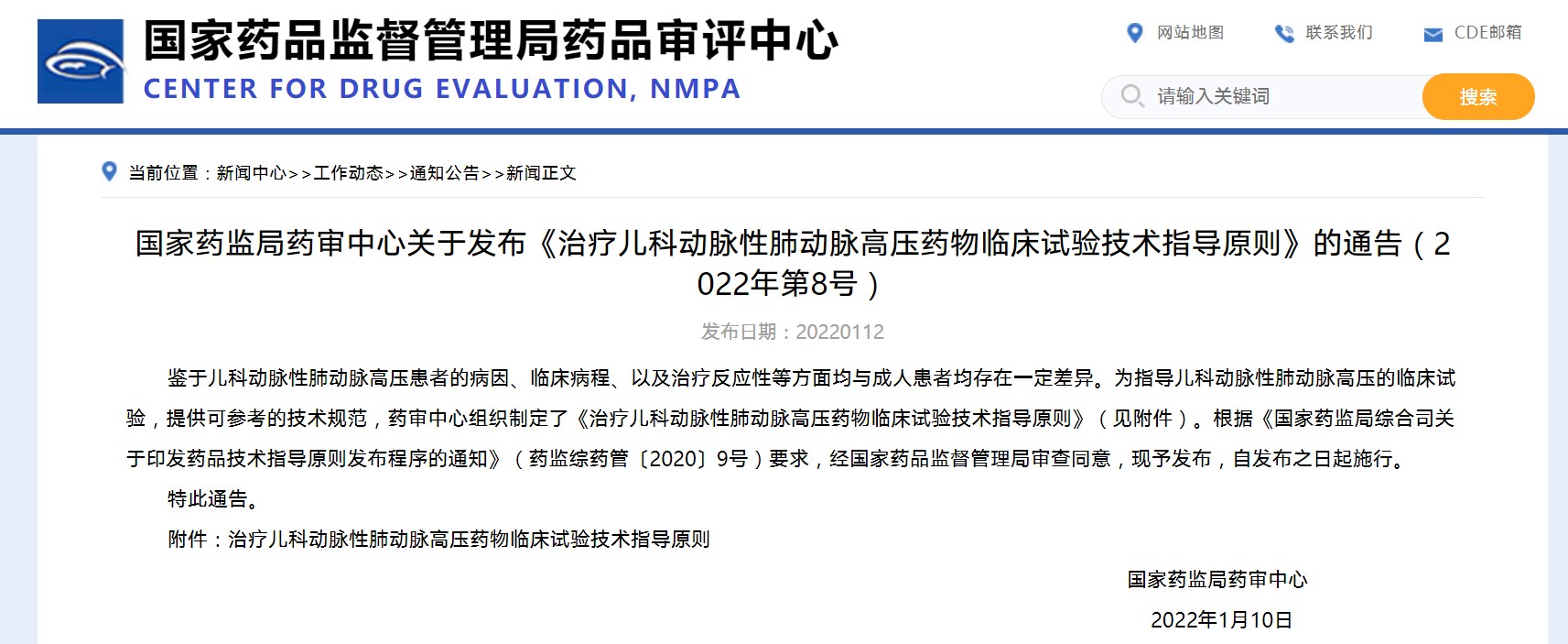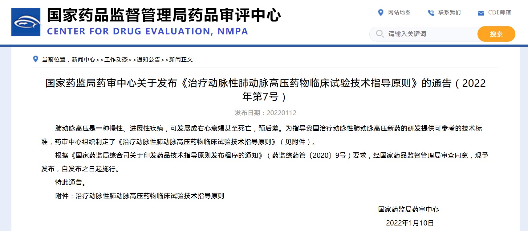 國家藥監局藥審中心關于發布《治療動脈性肺動脈高壓藥物臨床試驗技術指導原則》的通告(2022年第7號)