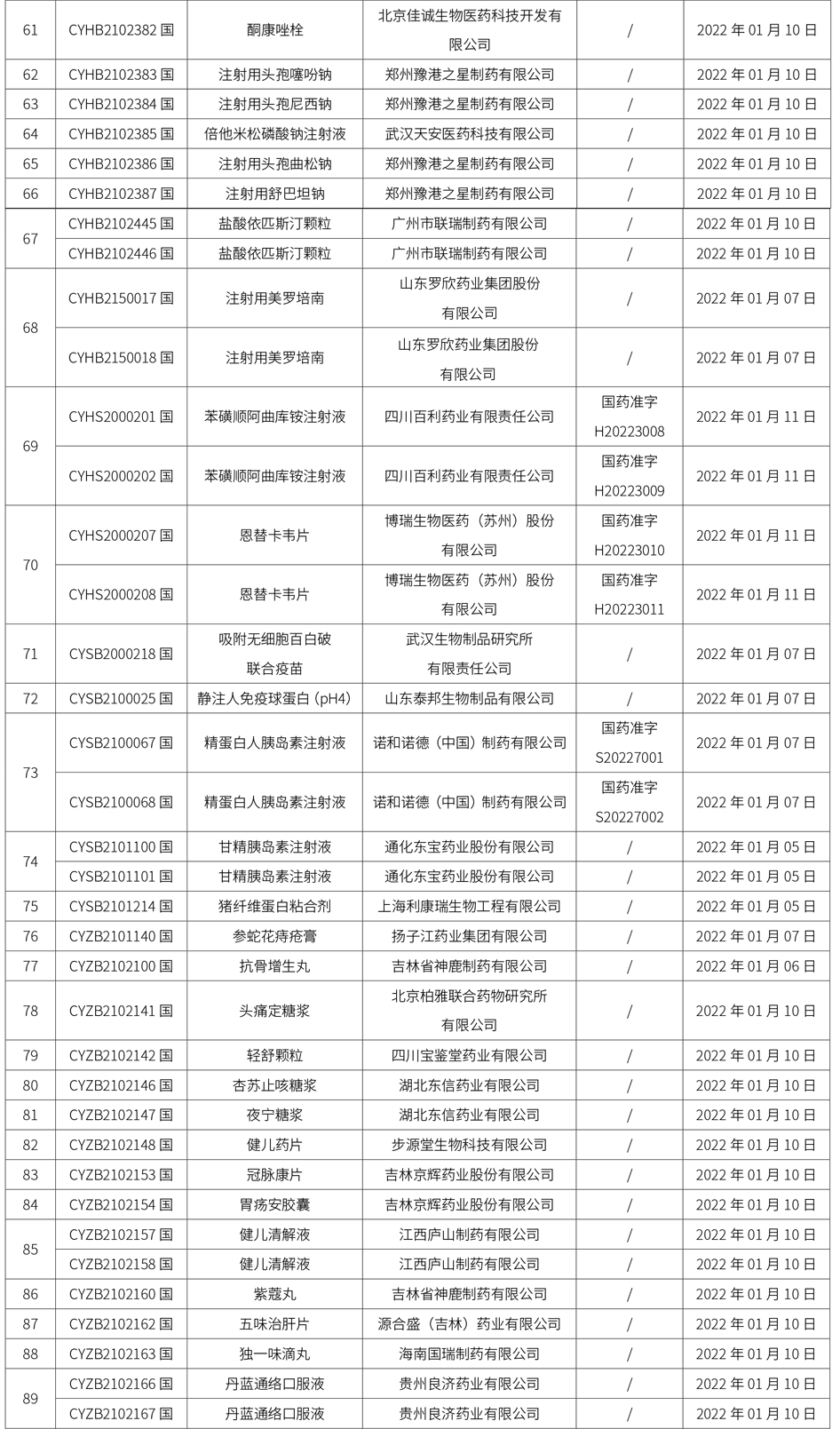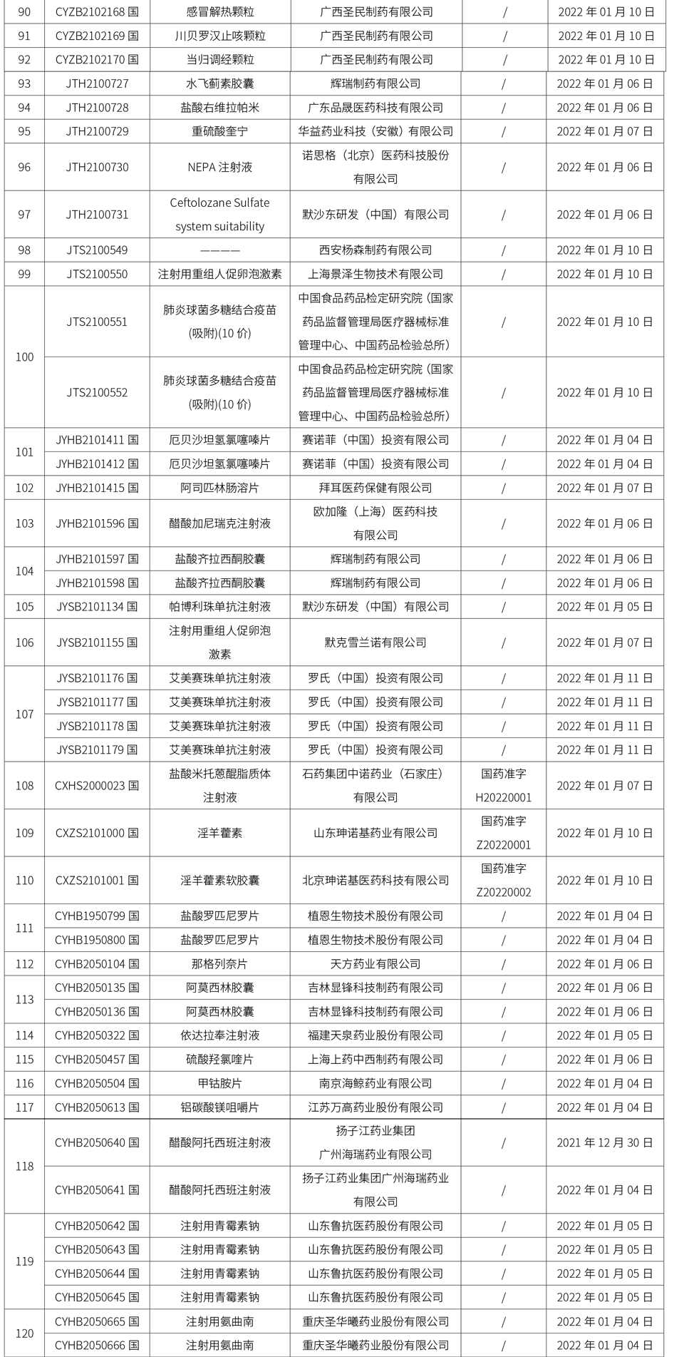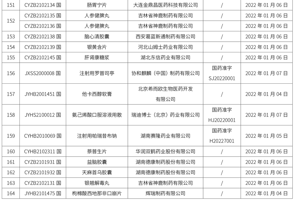 1. 本周共計164個品種獲批取得藥品批準證明文件,其中一致性評價品種22個,包括注射劑品種11個。