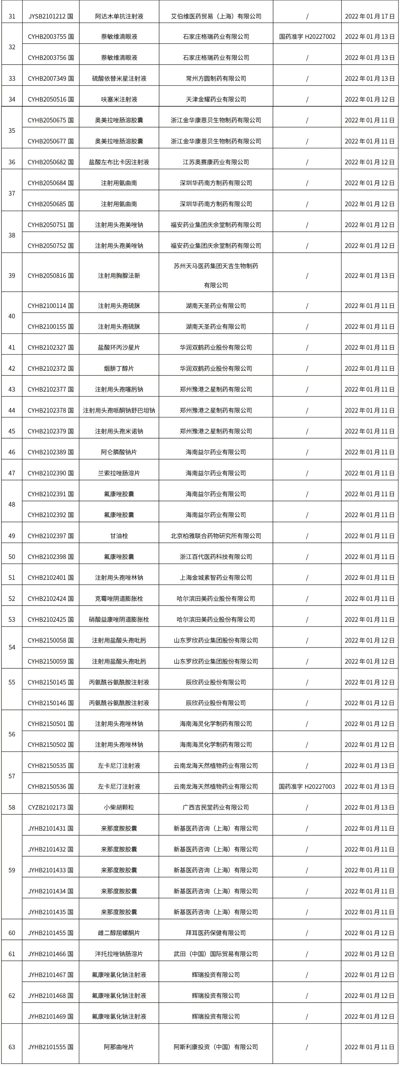 本周共計63個品種取得藥品批準證明文件,其中一致性評價品種11個,注射劑品種26個。