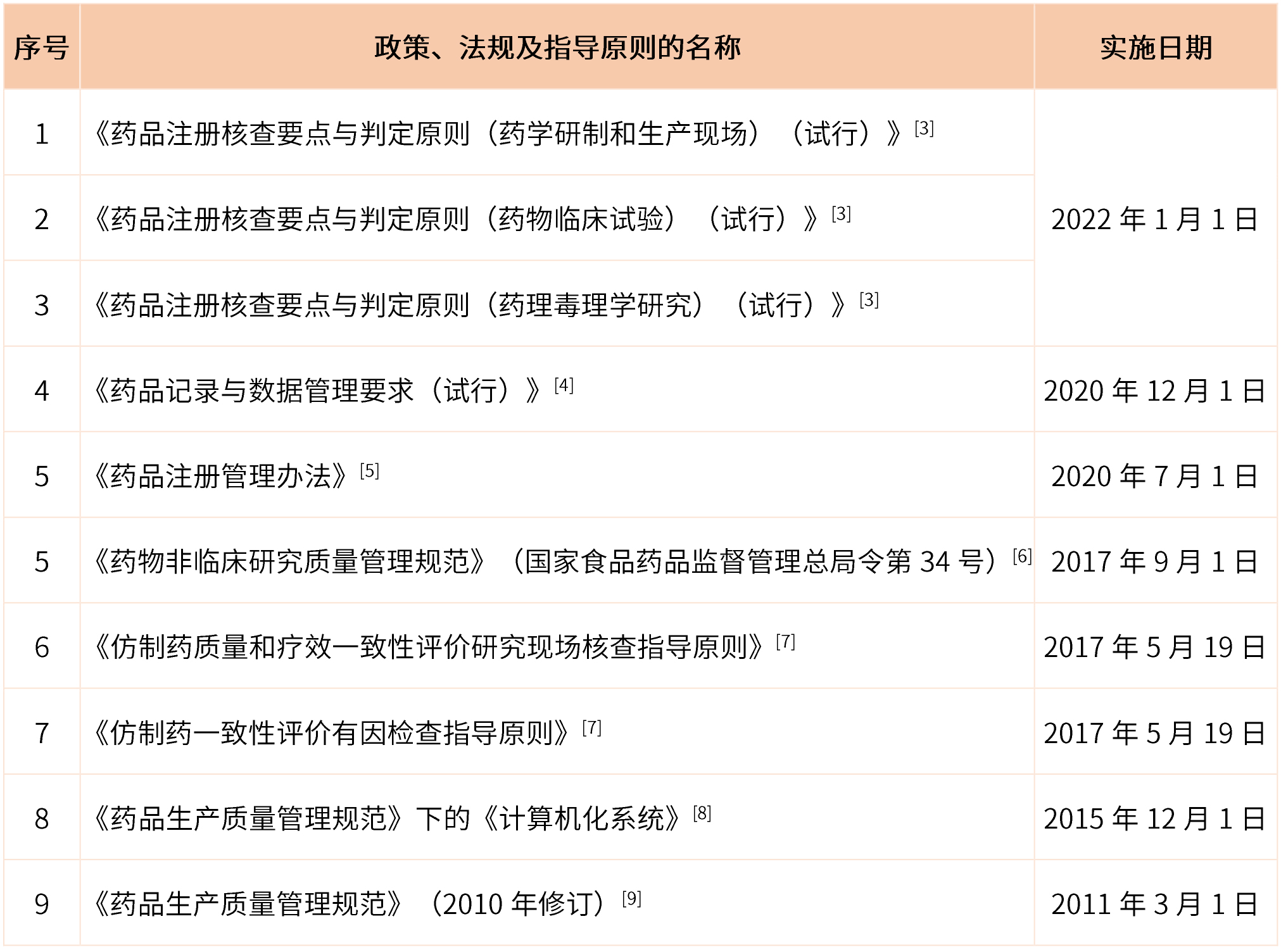 政策、法規(guī)及指導(dǎo)原則列表