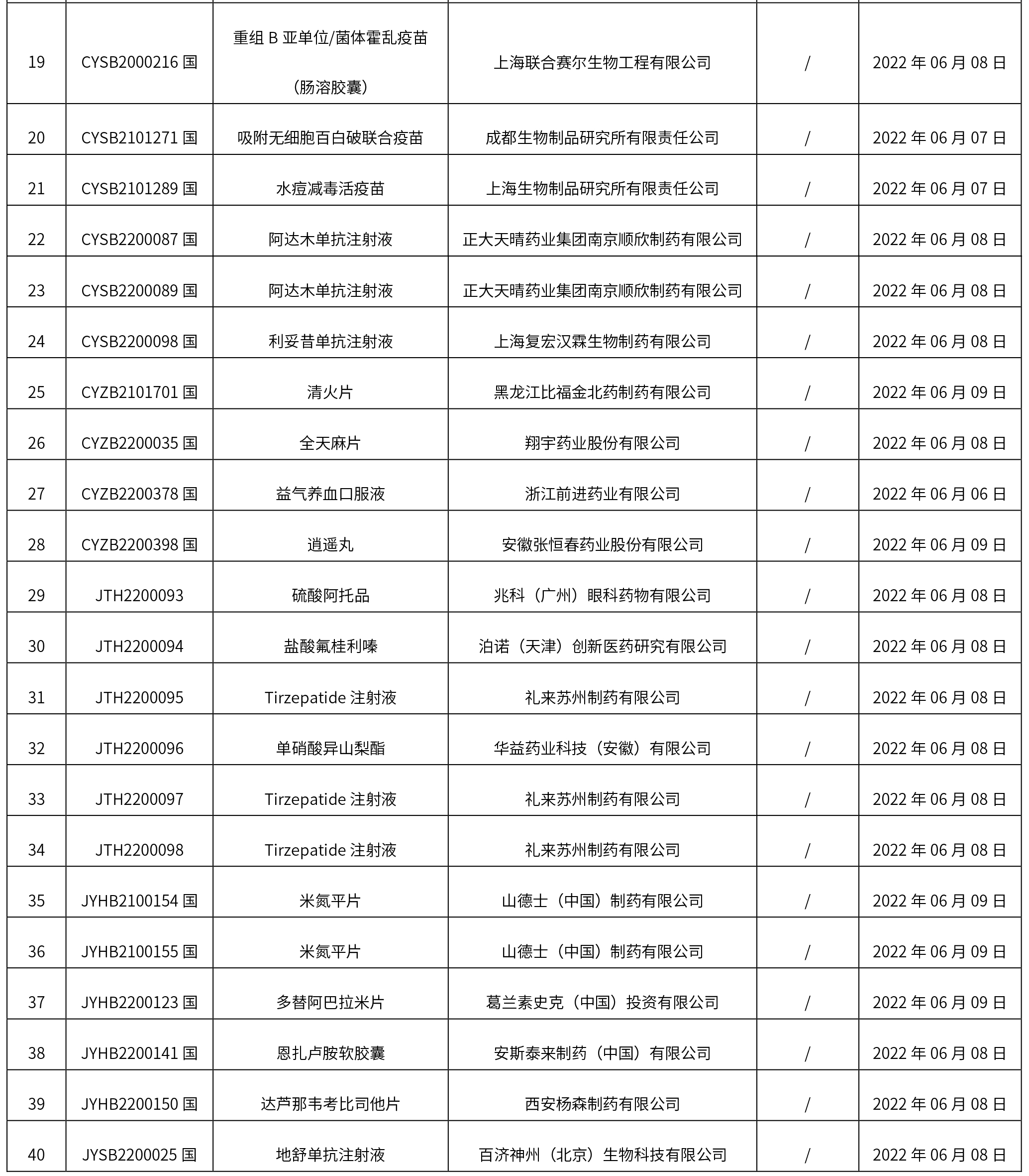 1、本周共計40個品規取得藥品批準證明文件,其中一致性評價品規2個,注射劑13個。