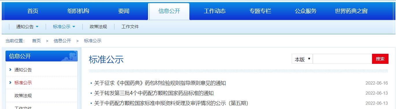 本周藥典委發布1個關于中藥配方顆粒國家標準申報資料受理及審評情況的公示(第五期),1個第三批4個中藥配方顆粒國家藥品標準的通知,1個征求《中國藥典》藥包材檢驗規則指導原則意見的通知。