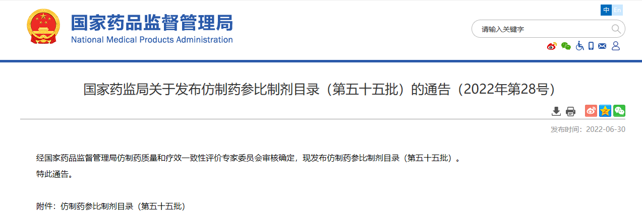 國家藥監(jiān)局關(guān)于發(fā)布仿制藥參比制劑目錄(第五十五批)的通告(2022年第28號)