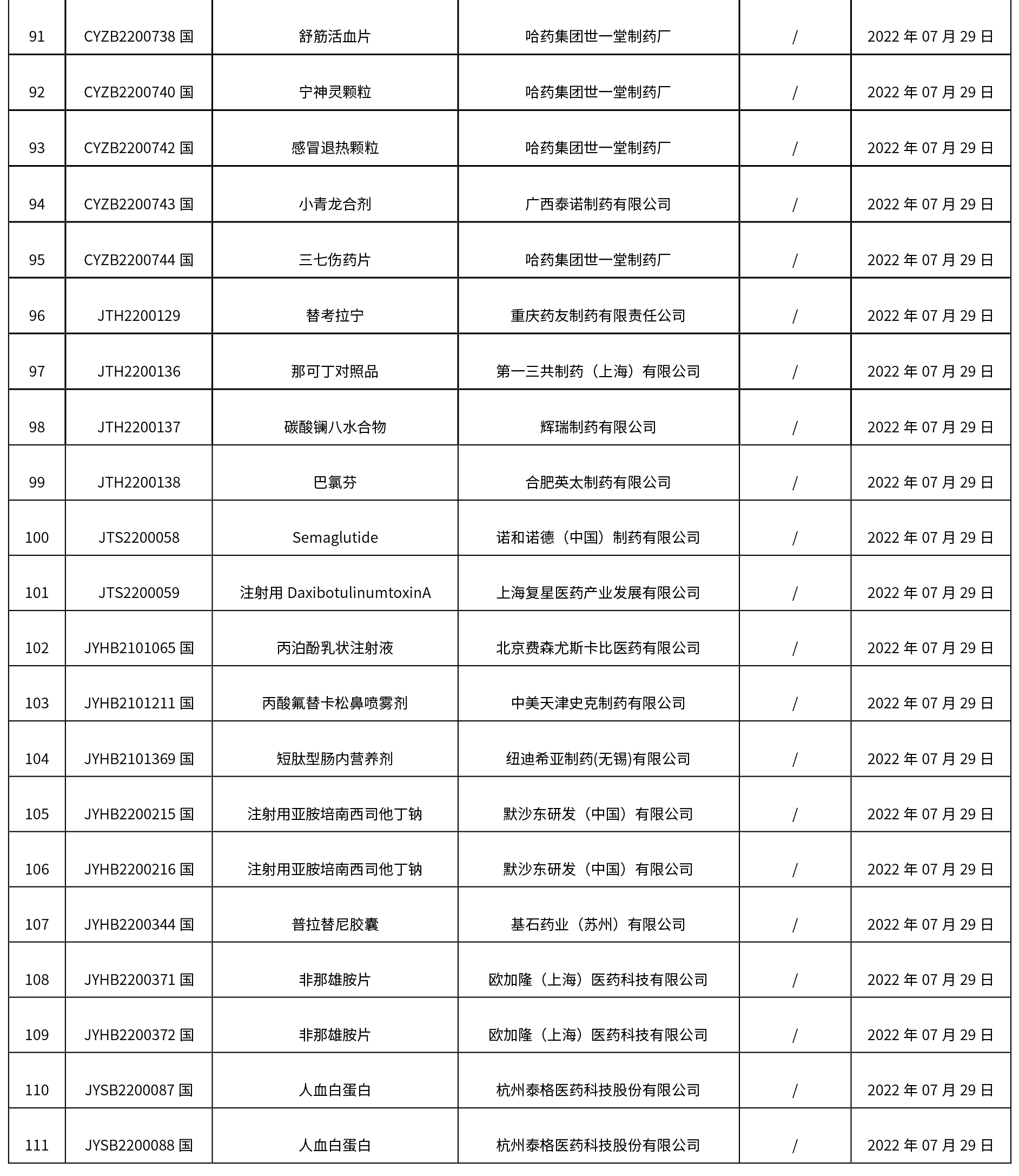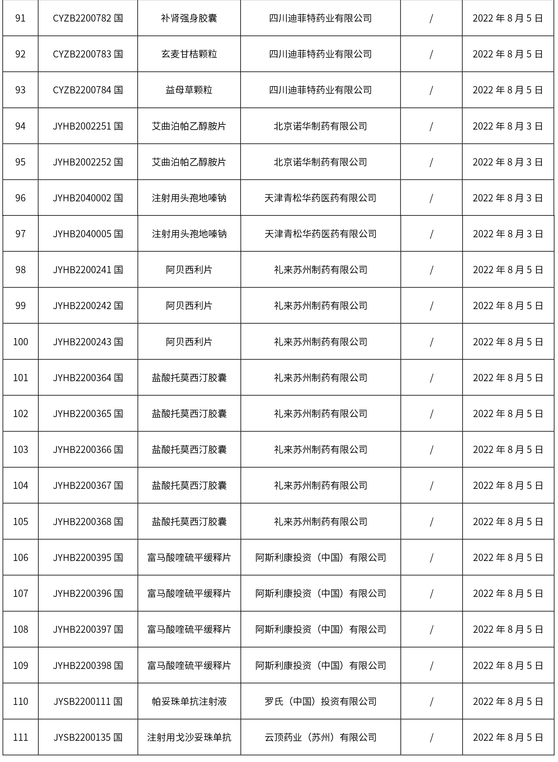 1. 本周(截止到8.12下午4:00)共計111個品種取得藥品批準證明文件,其中一致性評價品種5個。