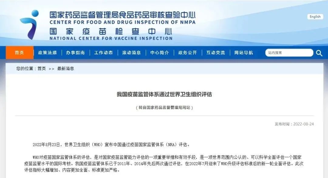 政策法規||我國疫苗監管體系通過世界衛生組織評估(附本周法規概覽08.22-08.26)