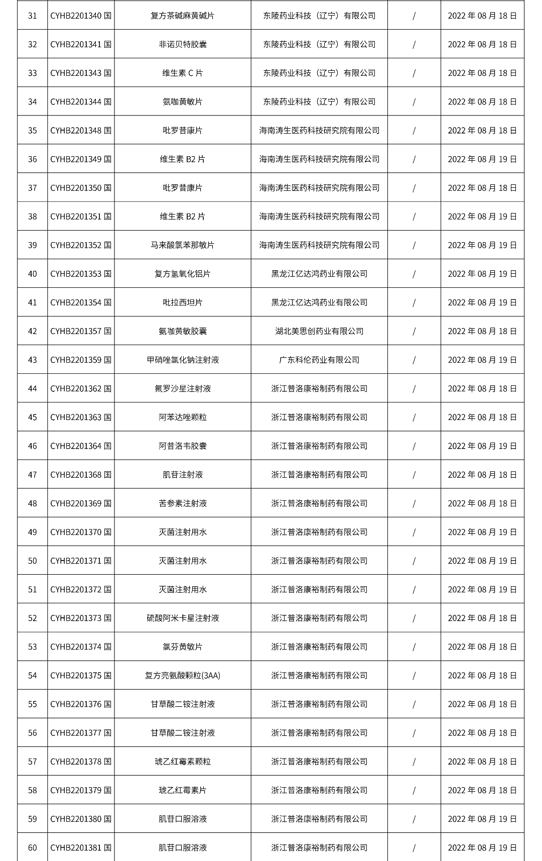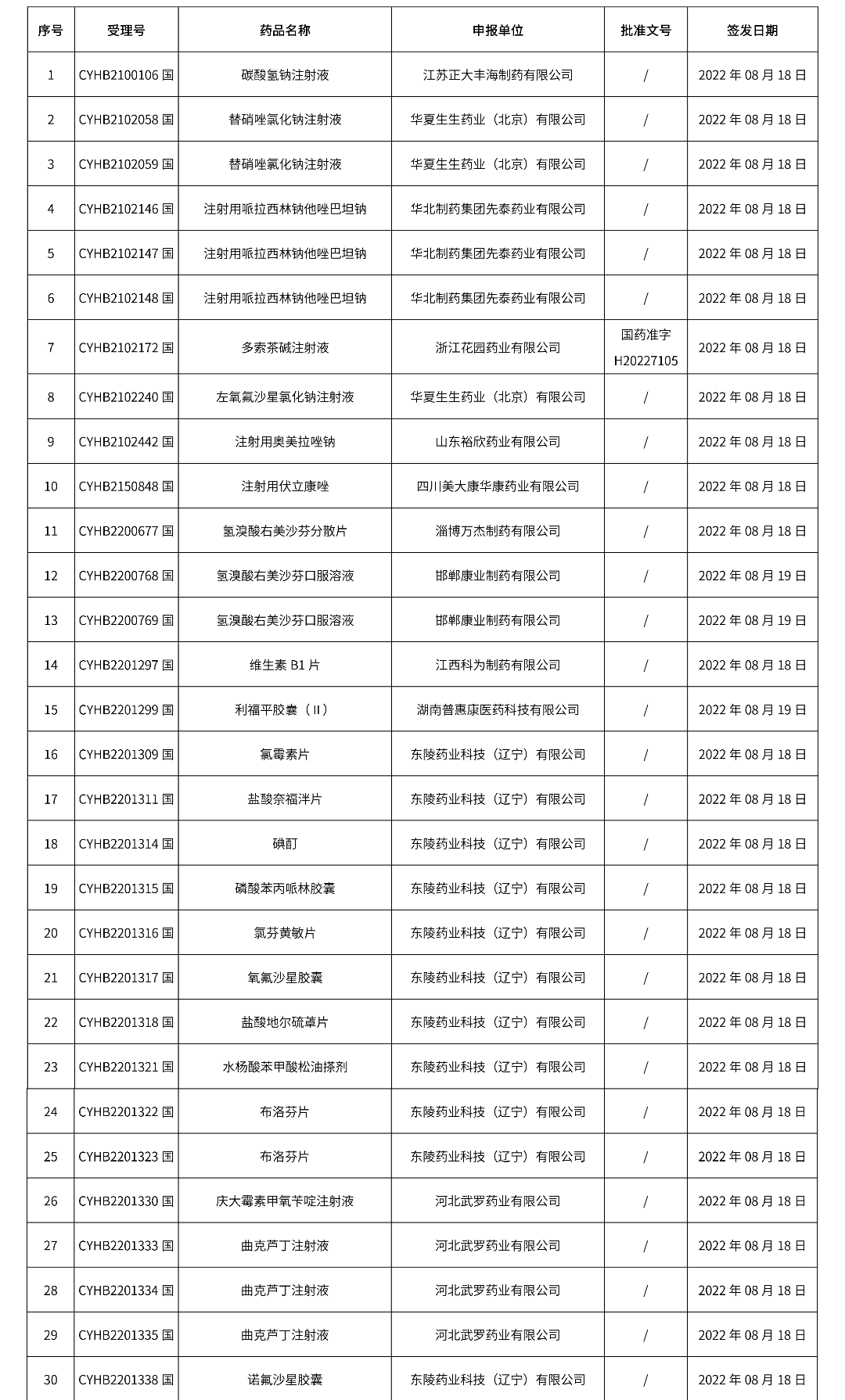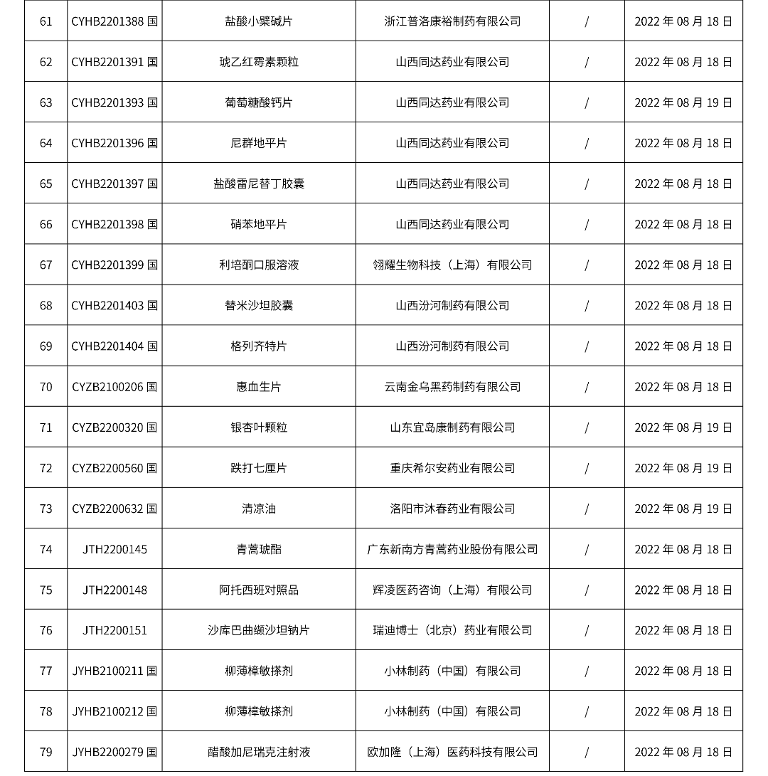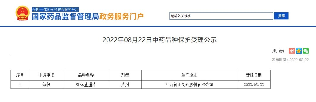 2022年08月22日中藥品種保護受理公示