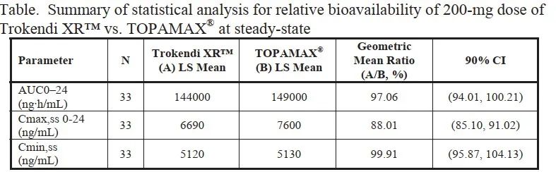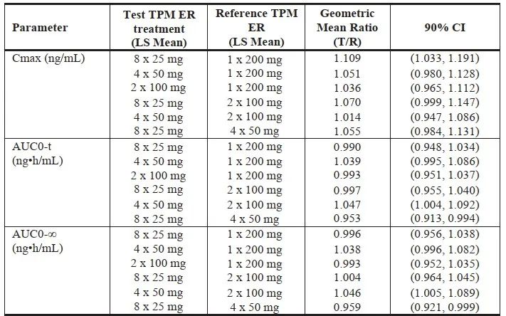 ·托吡酯緩釋膠囊將每個時間段的藥動學參數與片劑進行比較,證明兩種制劑的差異較小。實現豁免驗證性臨床。
