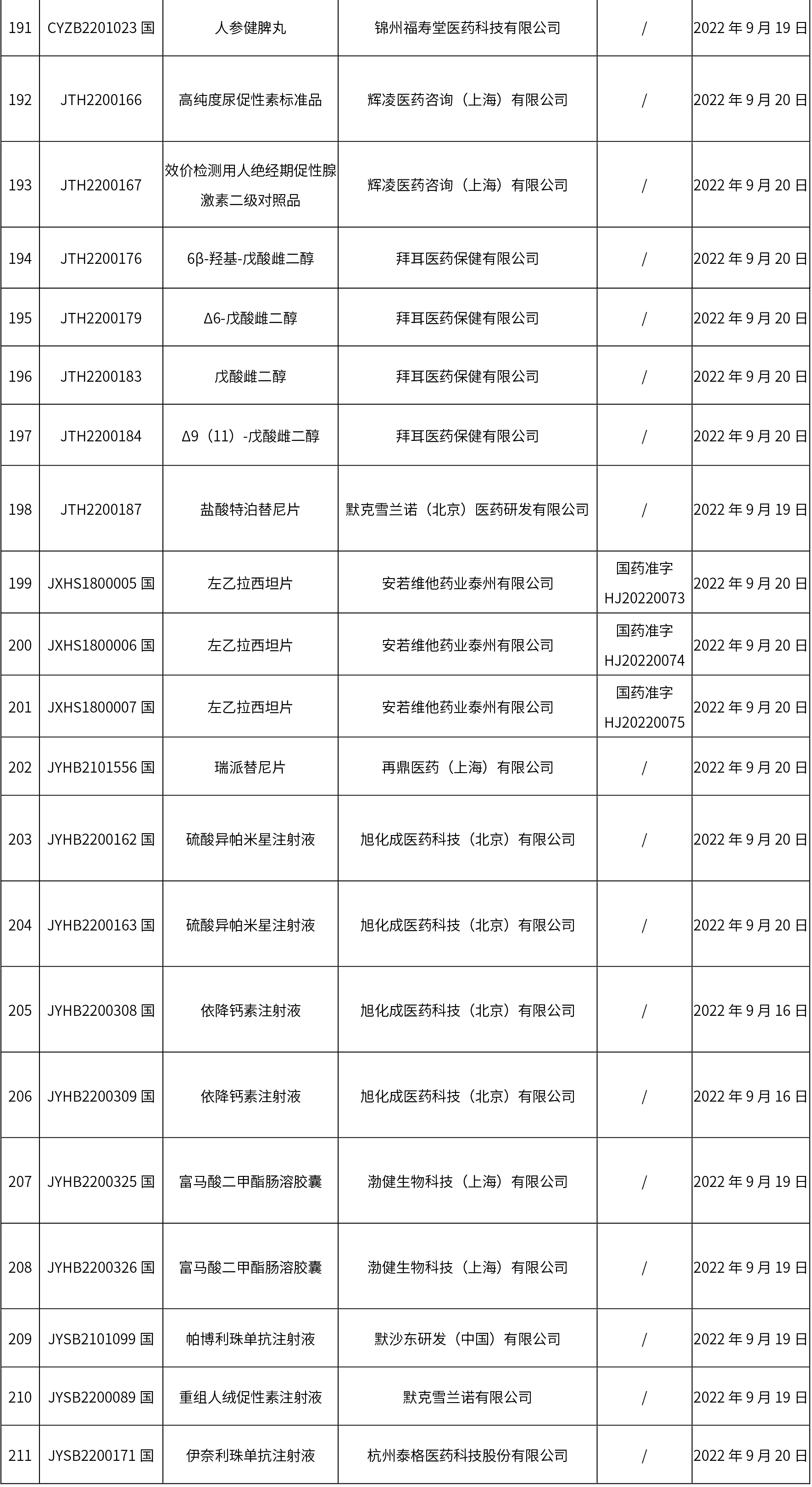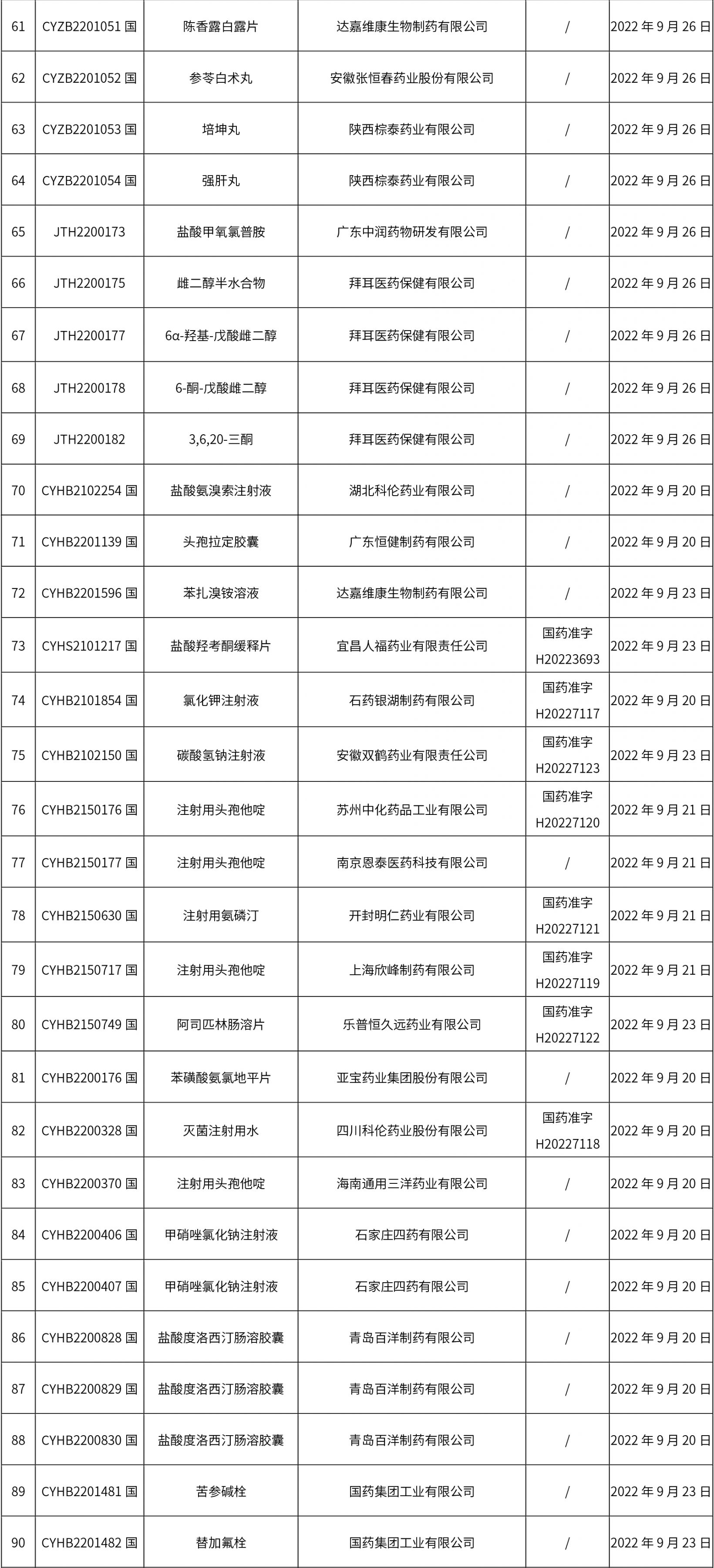 1. 本周(截止09.30中午12:15)共發布了211個品規的藥品批準證明文件待領取信息,其中一致性評價27個,注射劑51個(其中1個為滅菌注射用水)。