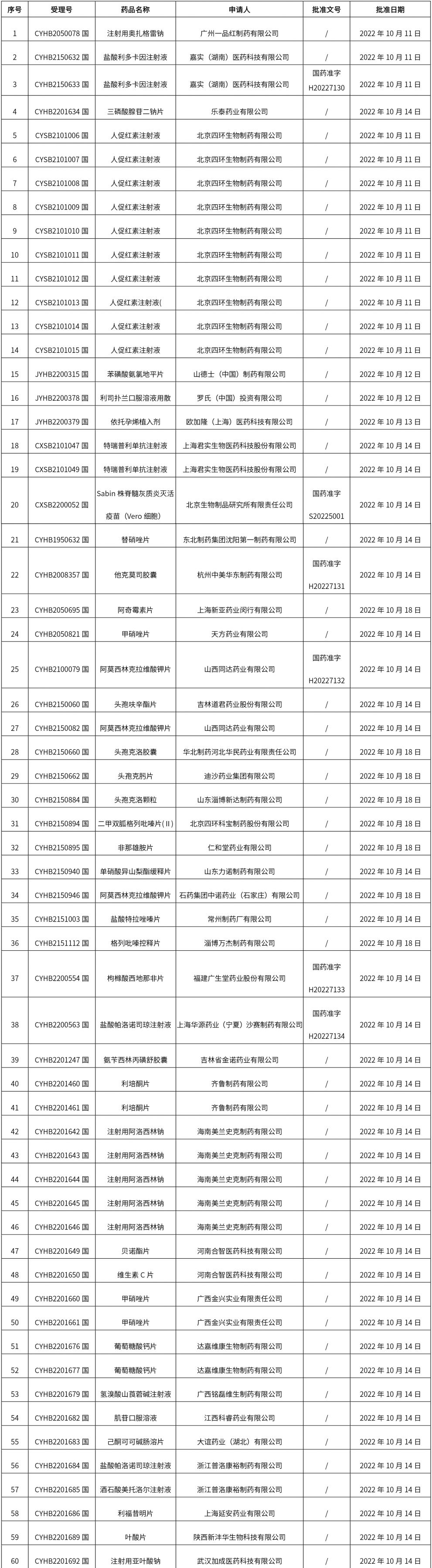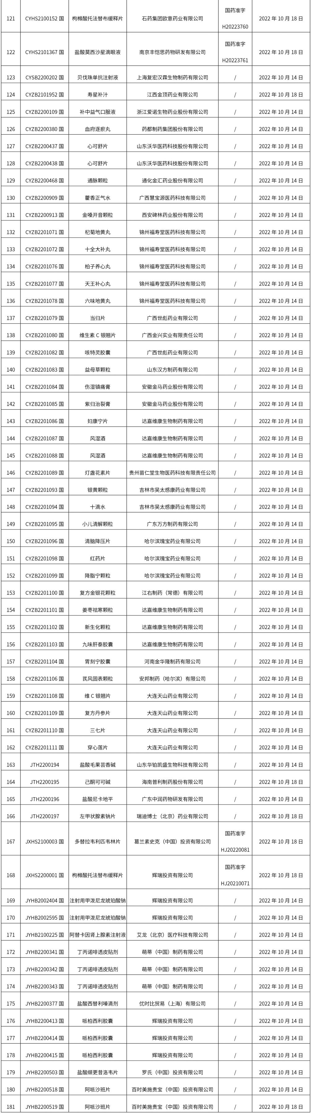 1. 本周(截止10.21中午12:15)共發布了181個品規的藥品批準證明文件待領取信息,其中一致性評價16個,注射劑57個。