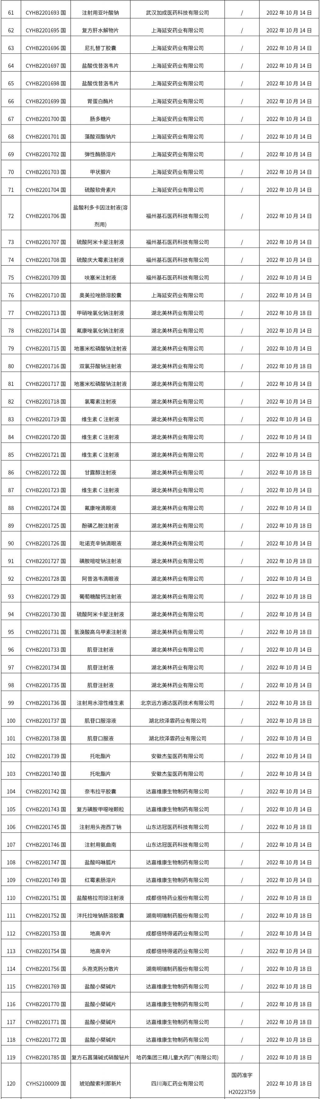 國家藥監局關于發布仿制藥參比制劑目錄(第六十一批)的通告(2022年第52號)