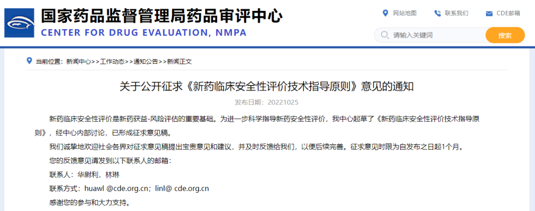 關(guān)于公開(kāi)征求《新藥臨床安全性評(píng)價(jià)技術(shù)指導(dǎo)原則》意見(jiàn)的通知