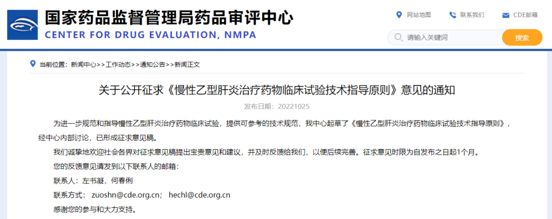 關(guān)于公開(kāi)征求《慢性乙型肝炎治療藥物臨床試驗(yàn)技術(shù)指導(dǎo)原則》意見(jiàn)的通知