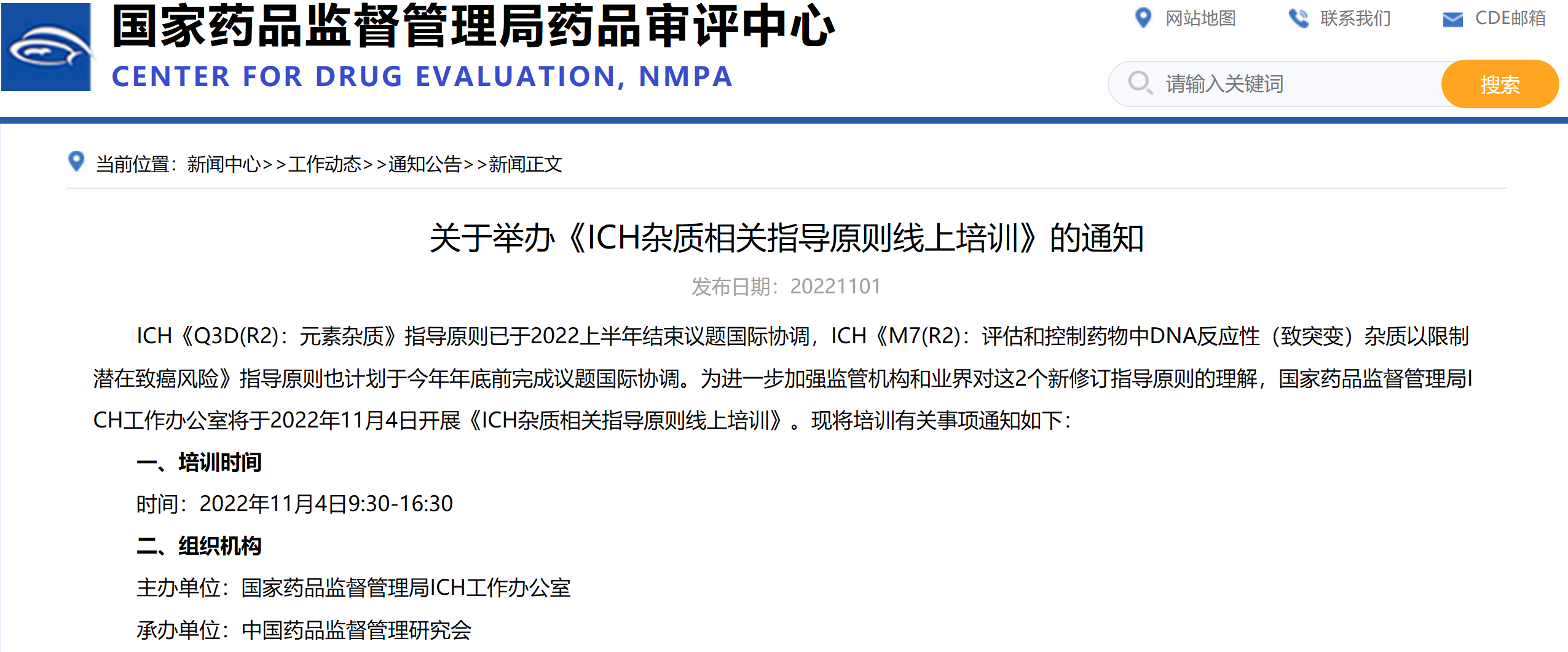 關于舉辦《ICH雜質相關指導原則線上培訓》的通知
