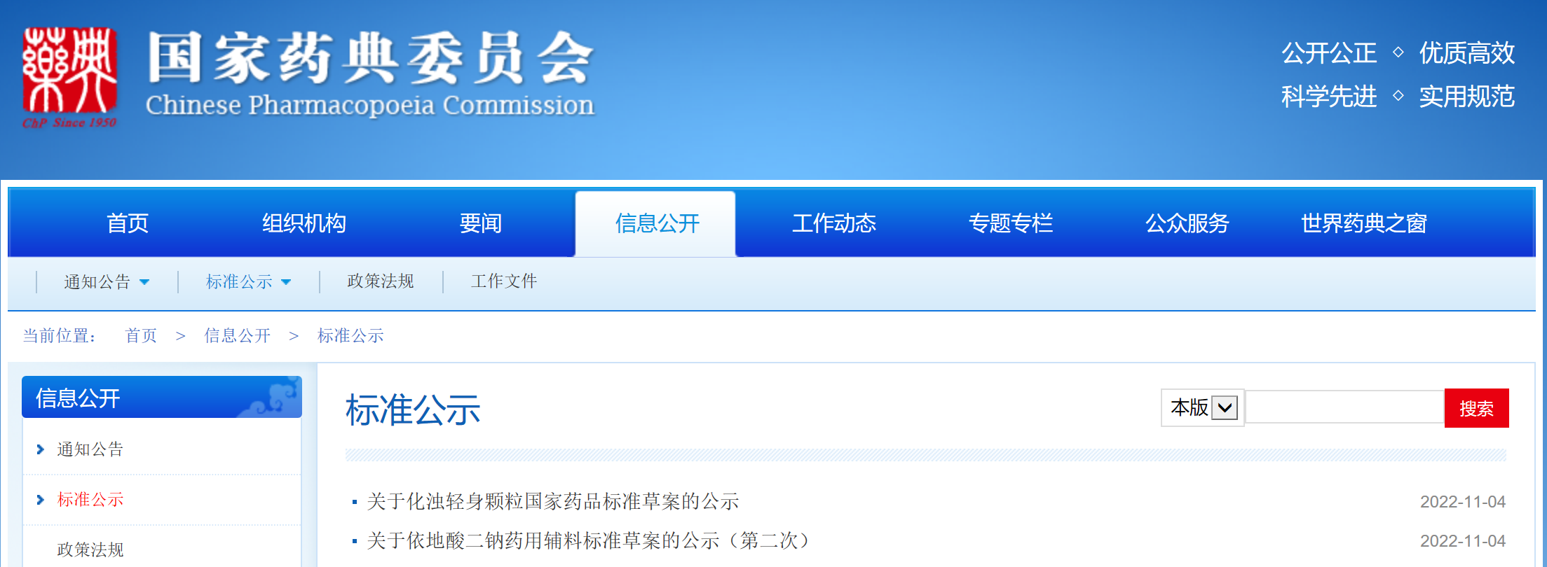本周發(fā)布化濁輕身顆粒國家藥品標準草案和依地酸二鈉藥用輔料標準草案的公示。