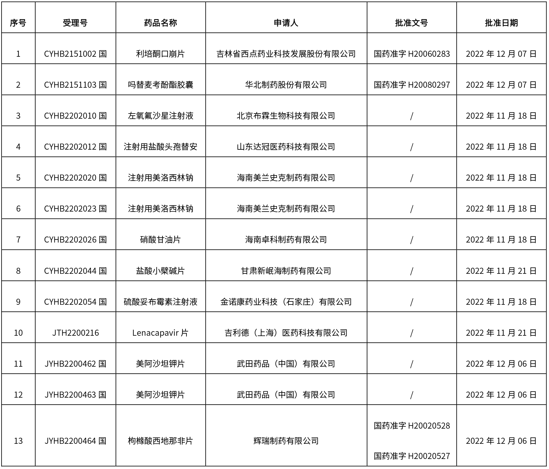 1. 本周(截止到12月16日15:30)共發布13個品規的藥品批準證明文件待領取信息,其中一致性評價4個,注射劑3個。