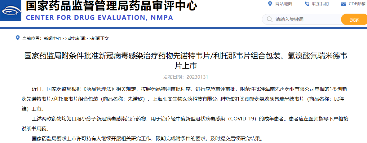 國家藥監(jiān)局附條件批準新冠病毒感染治療藥物先諾特韋片/利托那韋片組合包裝、氫溴酸氘瑞米德韋片上市