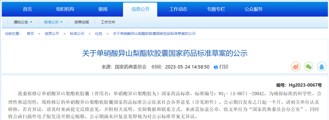 本周藥典委發布關于單硝酸異山梨酯軟膠囊國家藥品標準草案的公示。
