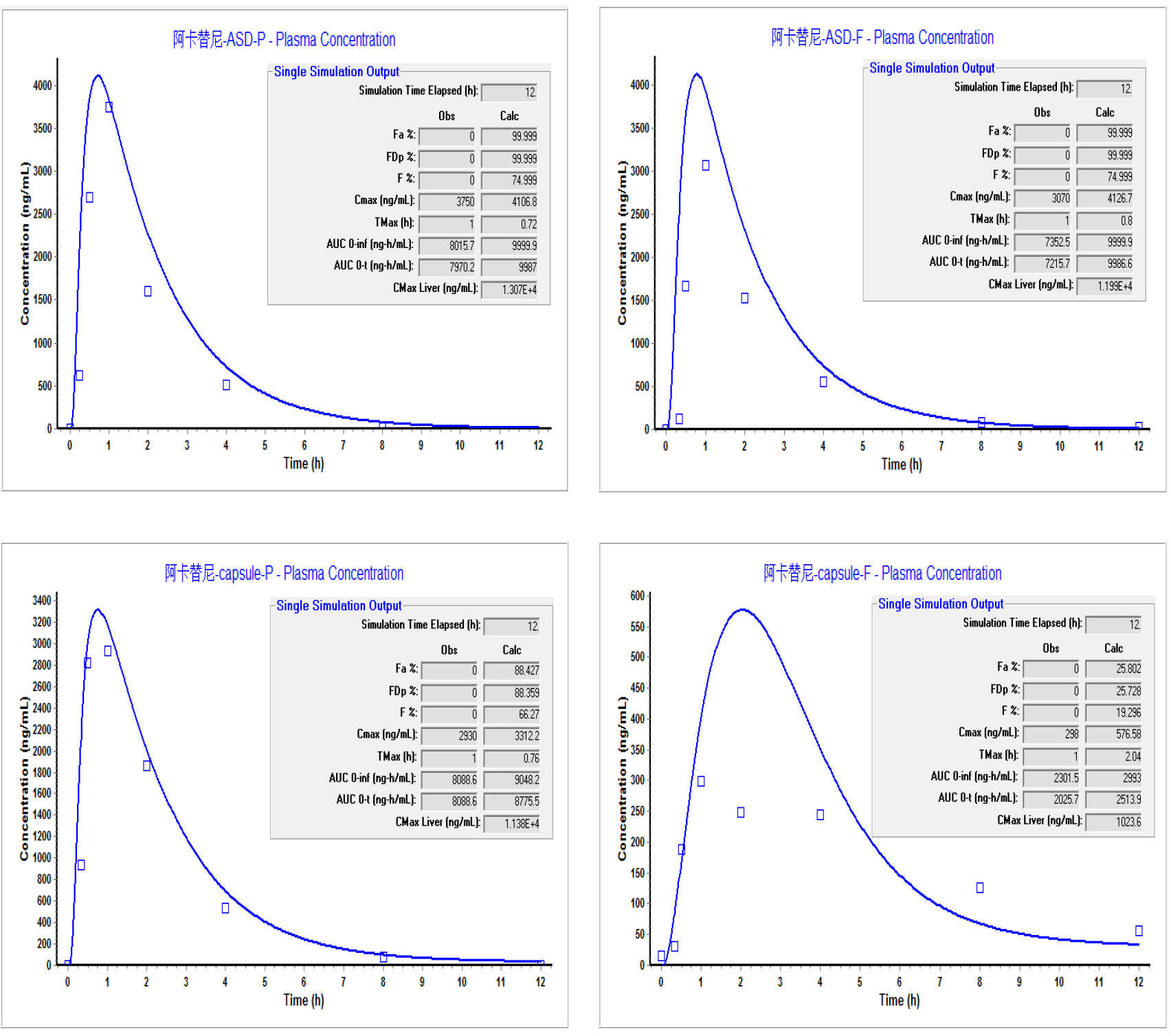 小編采用文章中模型建立參數(shù)值及文獻(xiàn)調(diào)研值,運(yùn)用Gastroplus軟件進(jìn)行重現(xiàn),建立的模型預(yù)測結(jié)果基本與文章模擬結(jié)果一致,模擬結(jié)果詳細(xì)如下:
