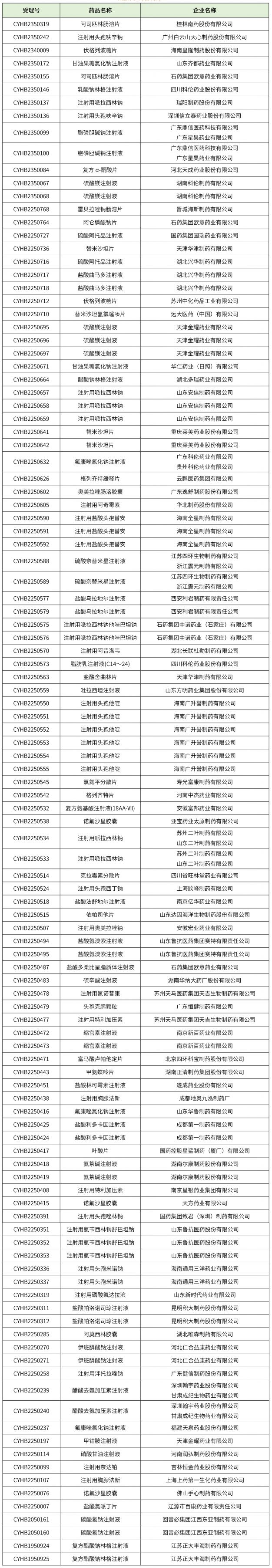 化藥一致性評價38個(注射用頭孢唑肟鈉、鹽酸二甲雙胍腸溶膠囊、鹽酸左布比卡因注射液、硫酸阿米卡星注射液、辛伐他汀片、胞磷膽堿鈉注射液、氟哌啶醇注射液、注射用賴氨匹林、注射用奧美拉唑鈉等),藥物詳細信息見下表。