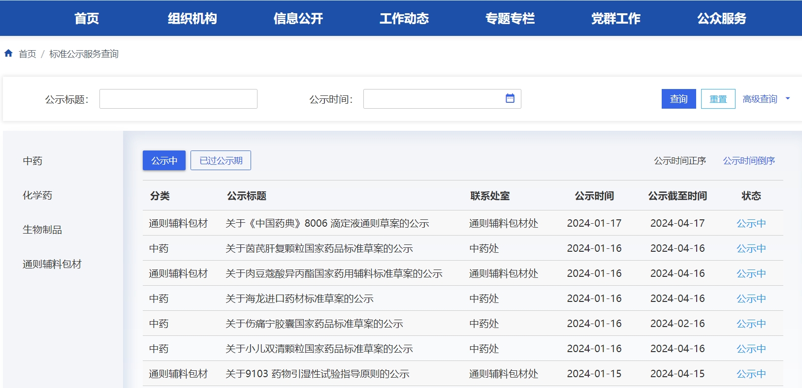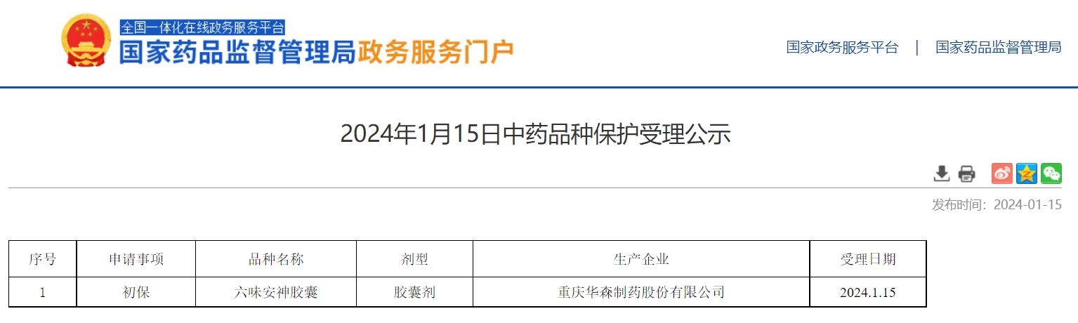 2024年1月15日中藥品種保護受理公示