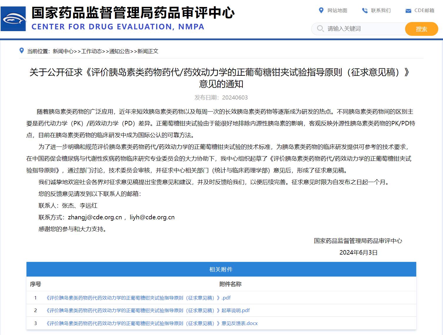 國家藥監局藥審中心關于公開征求《評價胰島素類藥物藥代/藥效動力學的正葡萄糖鉗夾試驗指導原則(征求意見稿)》意見的通知