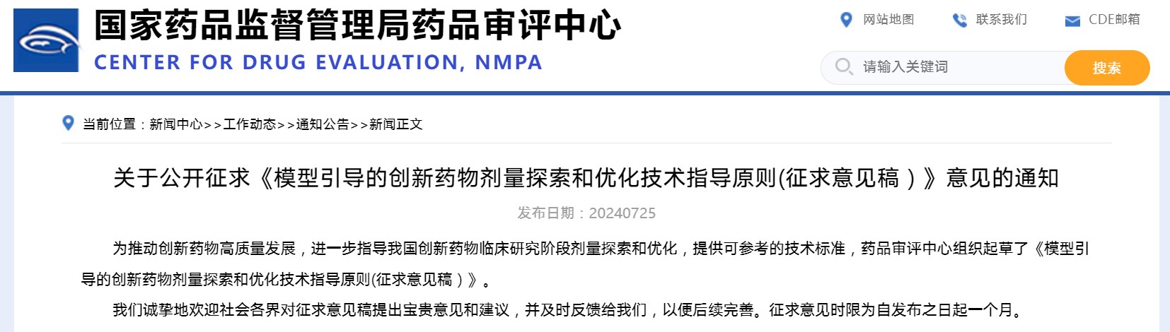 關于公開征求《模型引導的創(chuàng)新藥物劑量探索和優(yōu)化技術指導原則(征求意見稿)》意見的通知