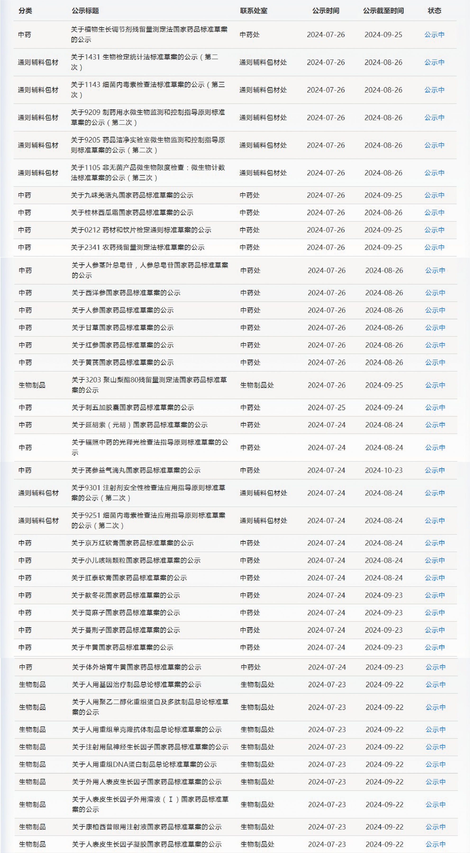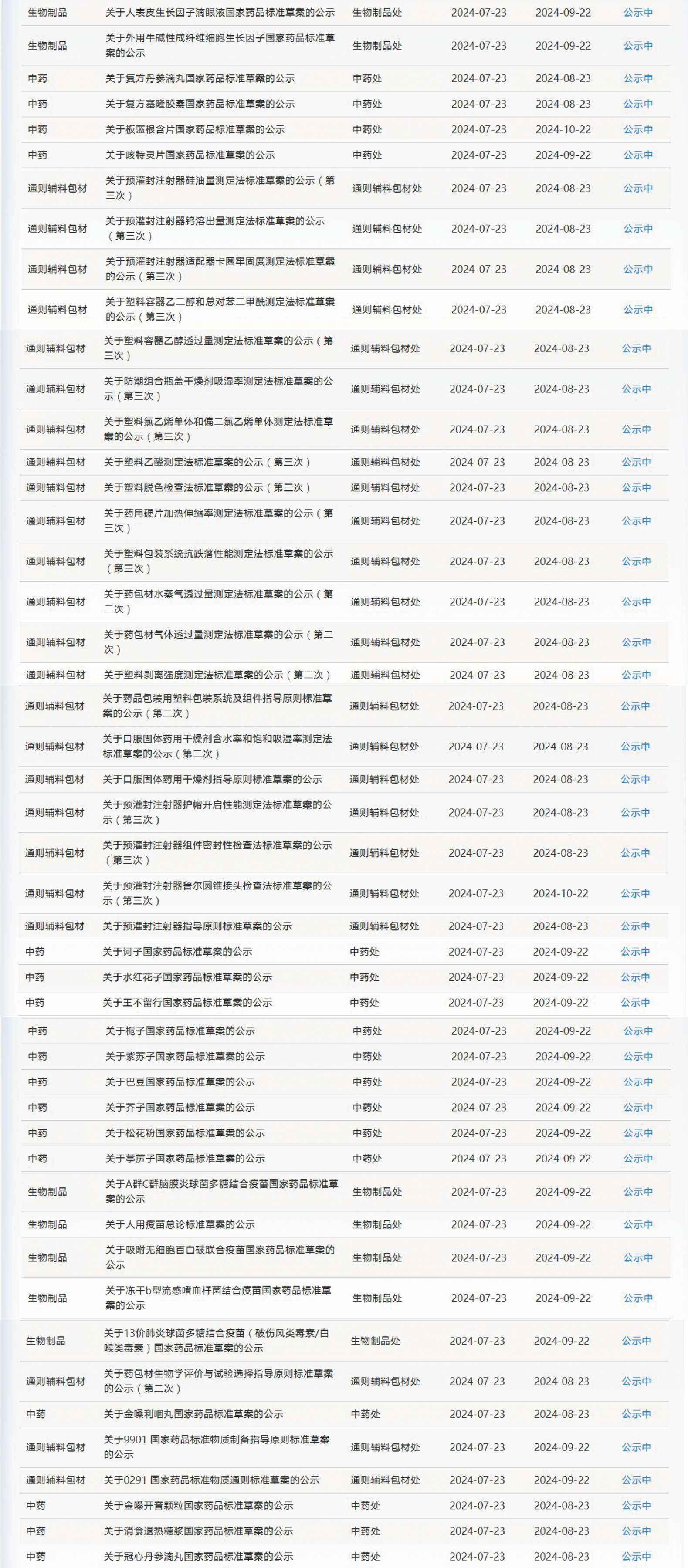 本周,藥典委發(fā)布的標準草案公示如下: