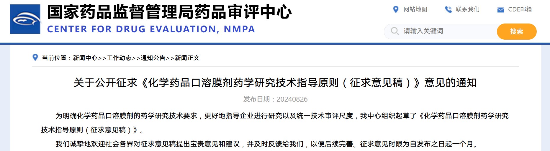 國家藥監局藥審中心關于公開征求《化學藥品口溶膜劑藥學研究技術指導原則(征求意見稿)》意見的通知
