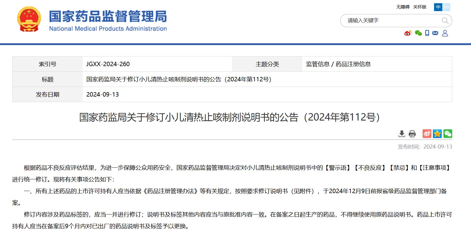 國(guó)家藥監(jiān)局關(guān)于修訂小兒清熱止咳制劑說(shuō)明書(shū)的公告