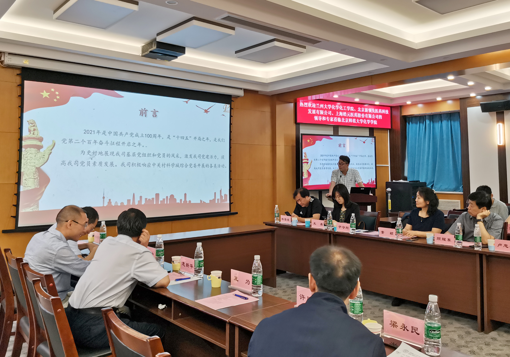 On the occasion of the 100th anniversary of the founding of the Communist Party of China, in response to the call of General Secretary Xi Jinping, on June 9, representatives of party members from Beijing Leadingpharm, Beijing Normal University School of Chemistry, Lanzhou University School of Chemistry and Chemical Engineering, and Shanghai Yanyuan Pharmaceuticals gathered at Beijing Normal University to jointly carry out a seminar on "learning the history of the Party and promoting development" to deepen the Party's construction and promote the construction of industry, education and research.